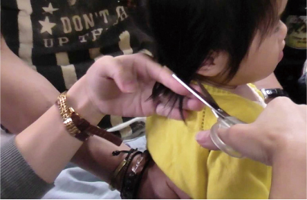 筆をつくるための髪の毛を切ってください。 ※髪の切り方は同封した髪の切り方案内書かサイトの散髪の仕方ページを参考にお切りください。 |